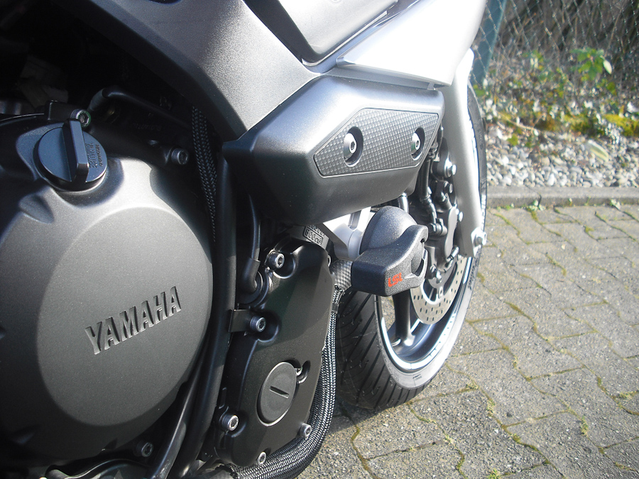 Ich habe mir die geholt und bin super zufrieden damit. Die Sturzpads werden mit neuen, laengeren Schrauben geliefert die Komplett in der Maschiene verschwinden. Ich habe nicht das gefuehl dass sich da irgendwas verbiegen kann wenn die Maschiene rauf faellt, da glaube ich eher dass die Puig schneller nachgeben.