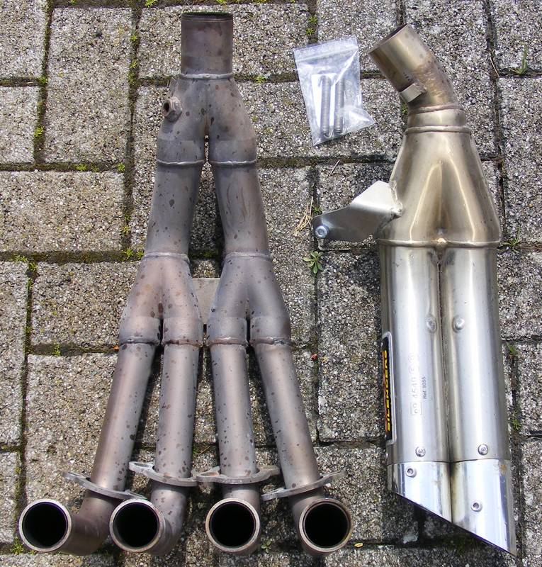 Krümmer mit KAT, Endtopf, Befestigungsschraube, 2x Federn (eine ist Ersatz) und das ABE